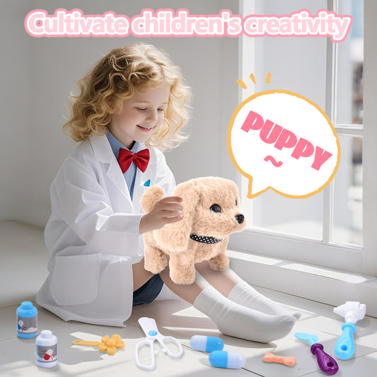 Casrra 25 Piece Kids Dog Toy Doctor Set, Interactive Plush Walking Barking Puppy Veterinarian Kit Carrier Play House Set with Pet Care Backpack - ABS Material Toys
